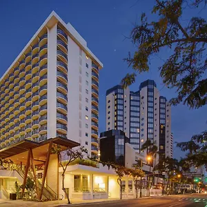 This Honolulu hotel provides guests with 3 restaurants, which specialize in wide variety of cuisines, including American and fusion. The onsite bar offers craft cocktails to please all tastes. It overlooks the sea. The restaurant Uncles New York Pub & Grill is right next to the hotel.